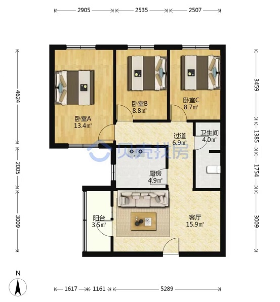 出租华苑-居华里-3室-房间-整租【房东直租】