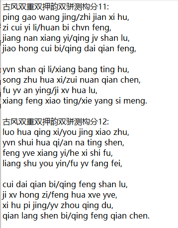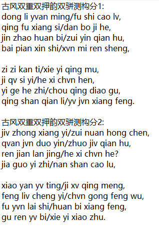 古风双重双押韵双骈测构分1: