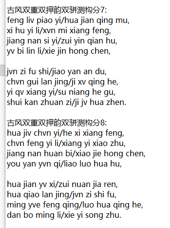 古风双重双押韵双骈测构分8: