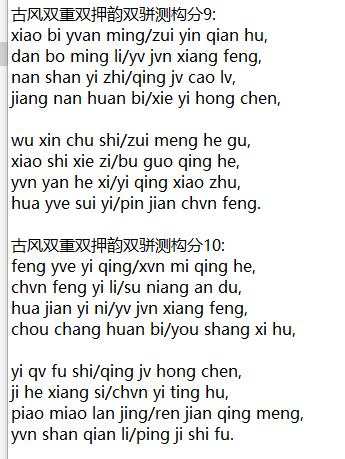 古风双重双押韵双骈测构分10:
