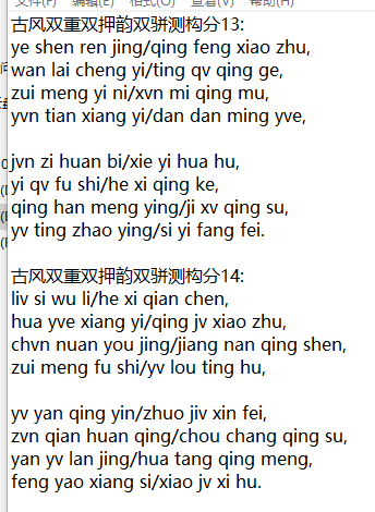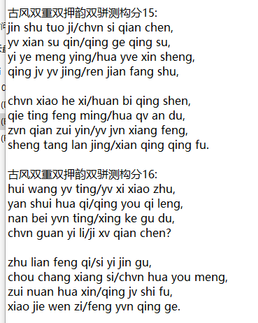 古风双重双押韵双骈测构分16: