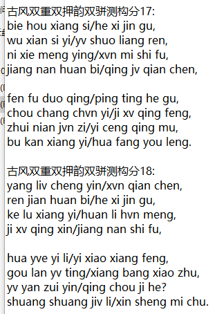 古风双重双押韵双骈测构分17: