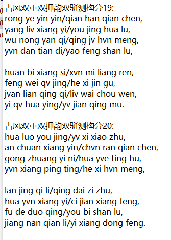 古风双重双押韵双骈测构分20:
