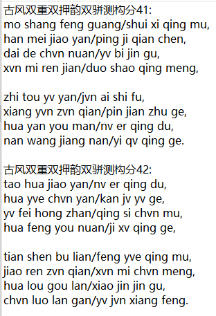 古风双重双押韵双骈测构分42: