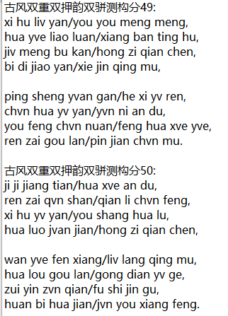 古风双重双押韵双骈测构分49: