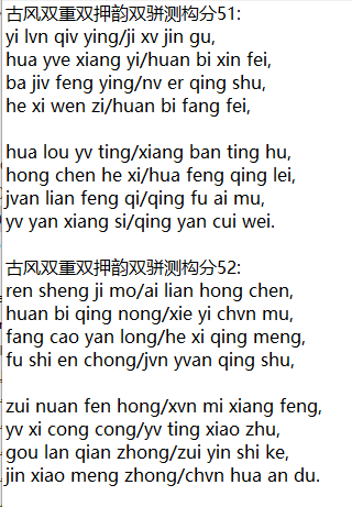 古风双重双押韵双骈测构分52: