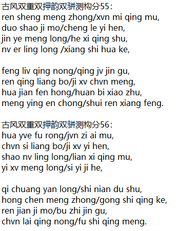 古风双重双押韵双骈测构分55: