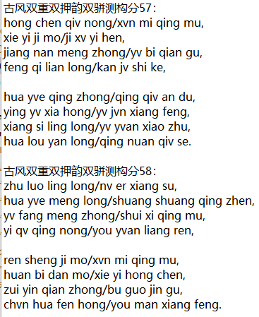 古风双重双押韵双骈测构分57: