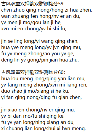 古风双重双押韵双骈测构分59: